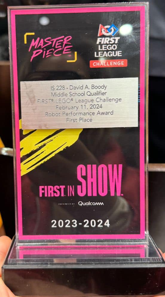 Congratulations to our FLL team Tech Titan for winning the Robot Performance Award and the Golden Ticket and advancing to the NYC FLL Championship!